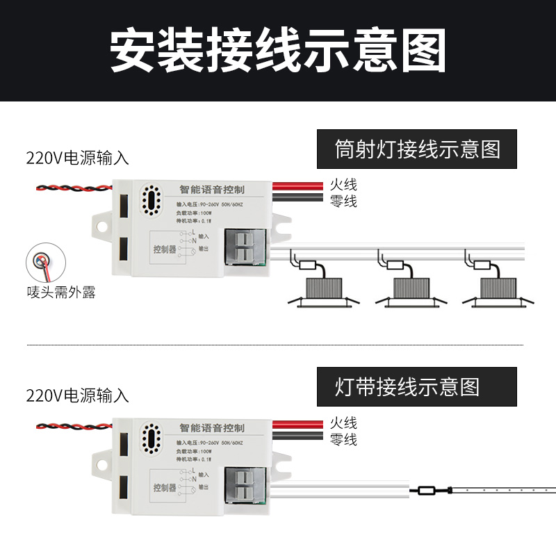 Smart voice inductive switch voice-controlled lamp Home module Remote control via break controller Lamp light Control light Kanter-Taobao