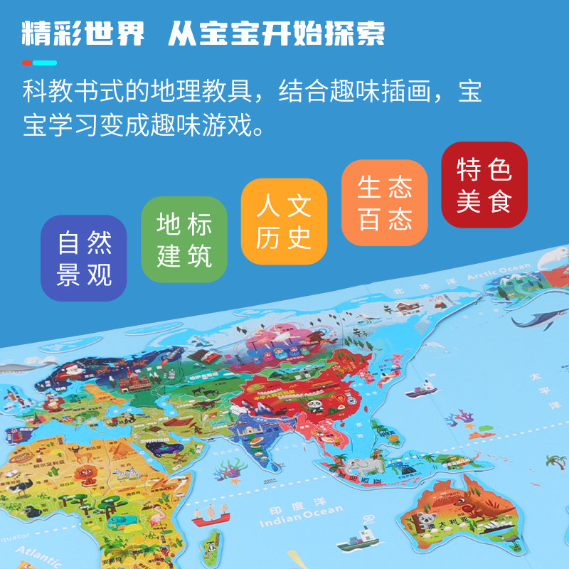 Mi Michi Playing World Map Puzzle Table Tours In Order Magnetic Jointed Board Toys 3 Year Old Girl Child Gift-Taobao