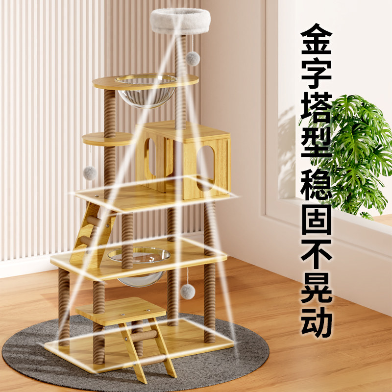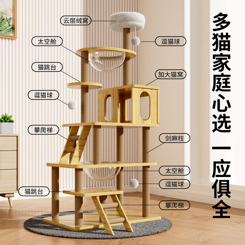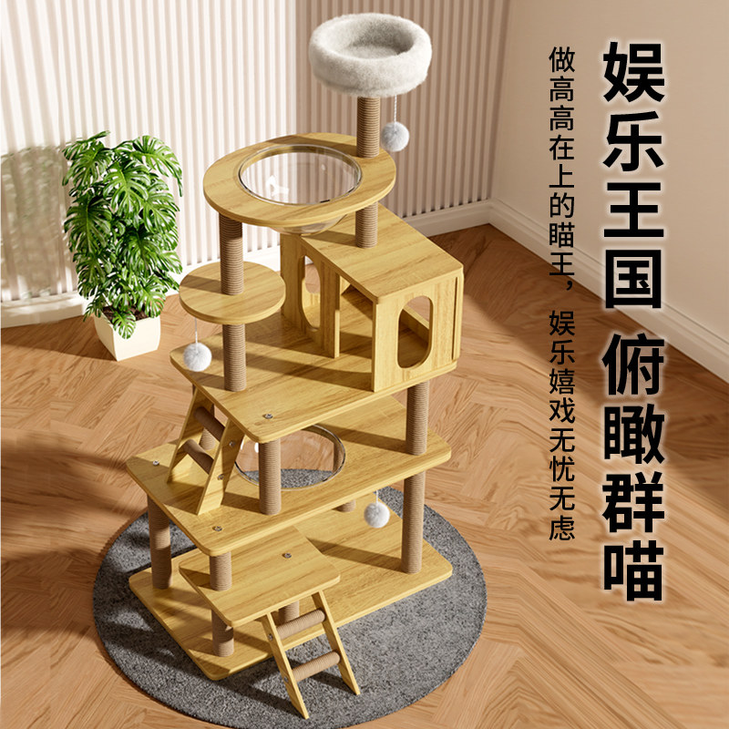 Cat-climbing cat-nest cat tree-integrated cat-grabbing board cat climbing shelf does not occupy space capsule through the sky-pillar solid wood feline jumping platform-Taobao