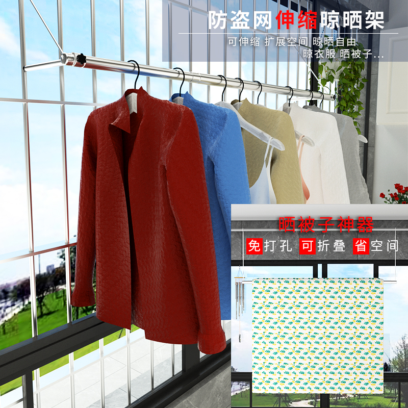 Non-mounting clotheshorse burglar-proof mesh Balcony Sunburn God Instrumental retractable clotheshorse Anti-theft mesh hanging wall Clothes-Taobao