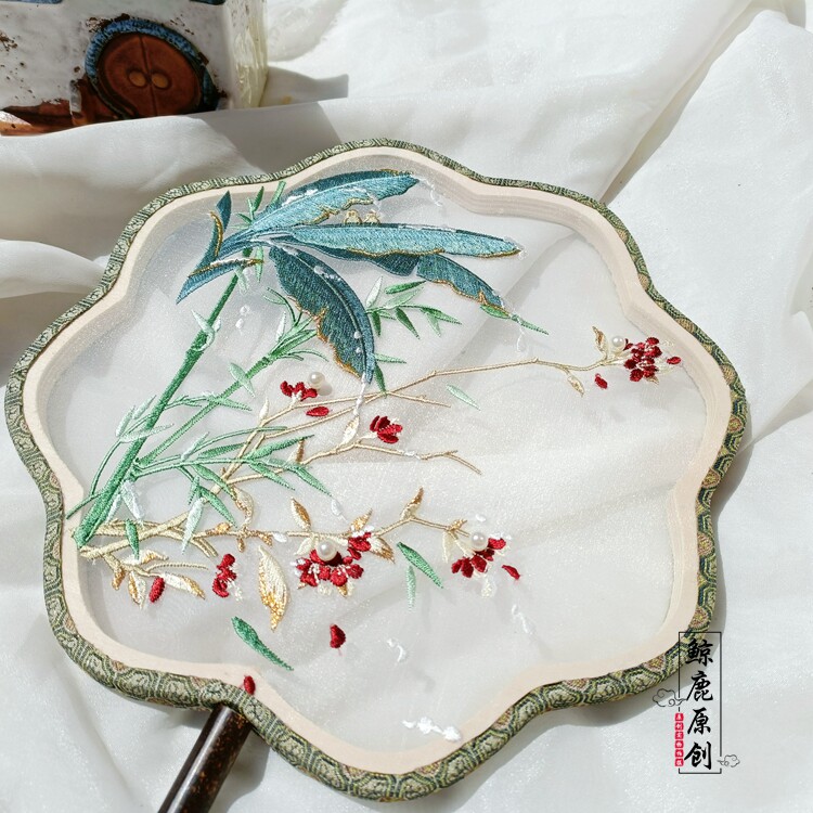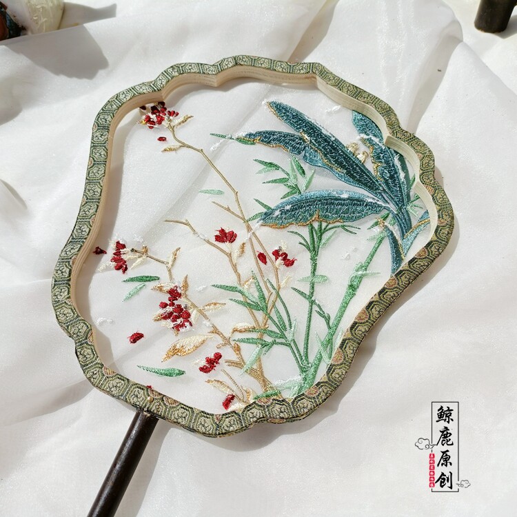 Whale deer original banana leaf purple shank shaped retro fan single-sided Han clothing accessories palace fan photo props