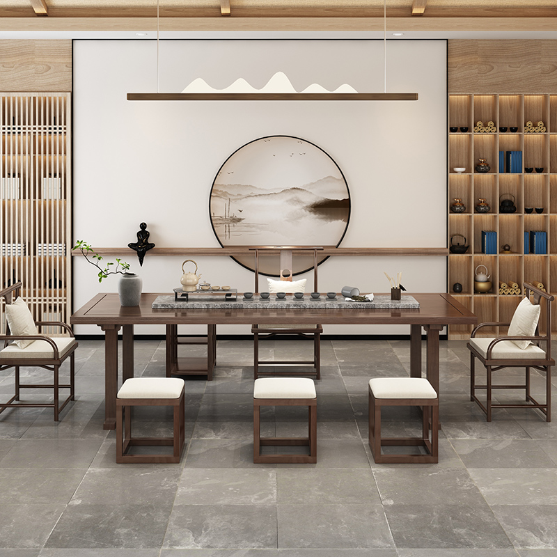 (color size support custom maximum can be made 4 m) 1 6 m Tea table owner chair 2 Zen position chair 3 square stool (delivered tea water cabinet) 1 8 m tea table owner chair 2 Zen position chair 3
