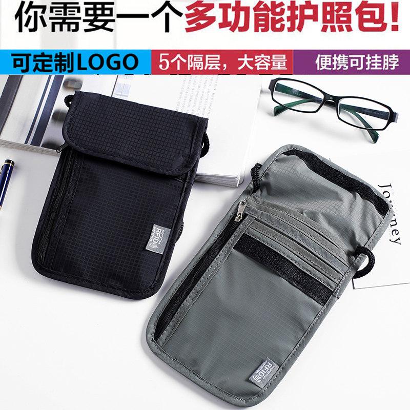 Close Hanging Neck Passport Bag Abroad Travel Ticket Large Mobile Phone Bag Slanted Satchel Waterproof Document Bag Set Print Logo-Taobao