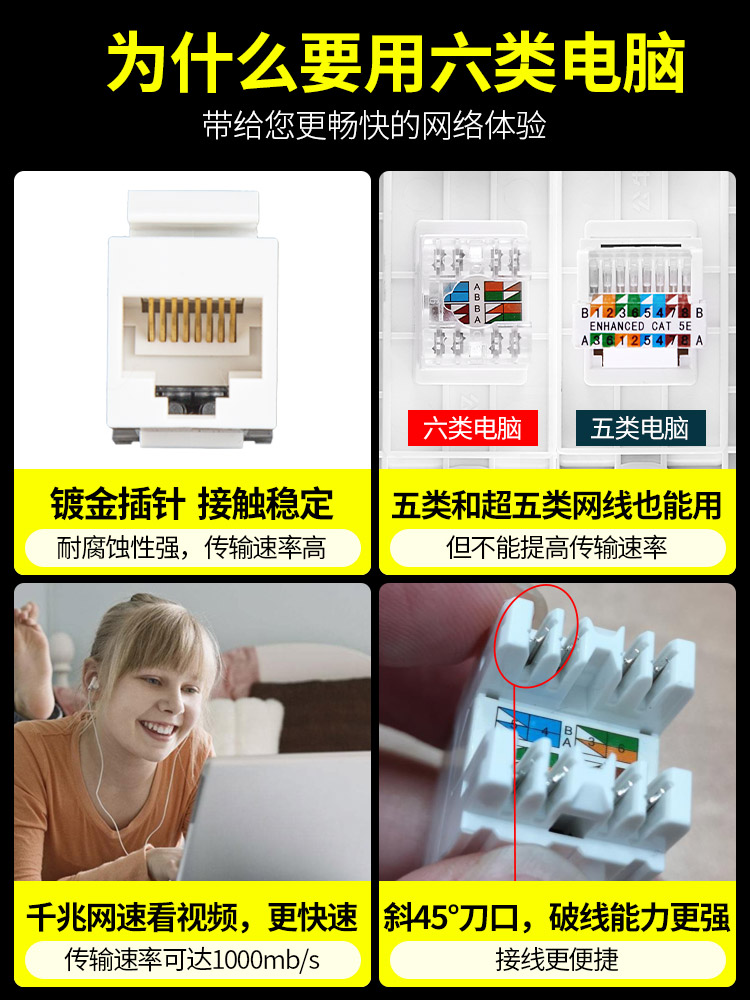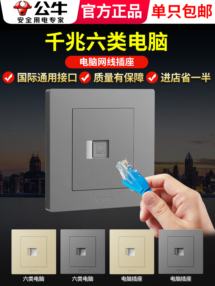 Bull Six Type Network Cable Socket Panel Computer Network Network Port 86 Type Broadband one thousand trillion 6 Type Network Wire Internetwork Interface-Taobao