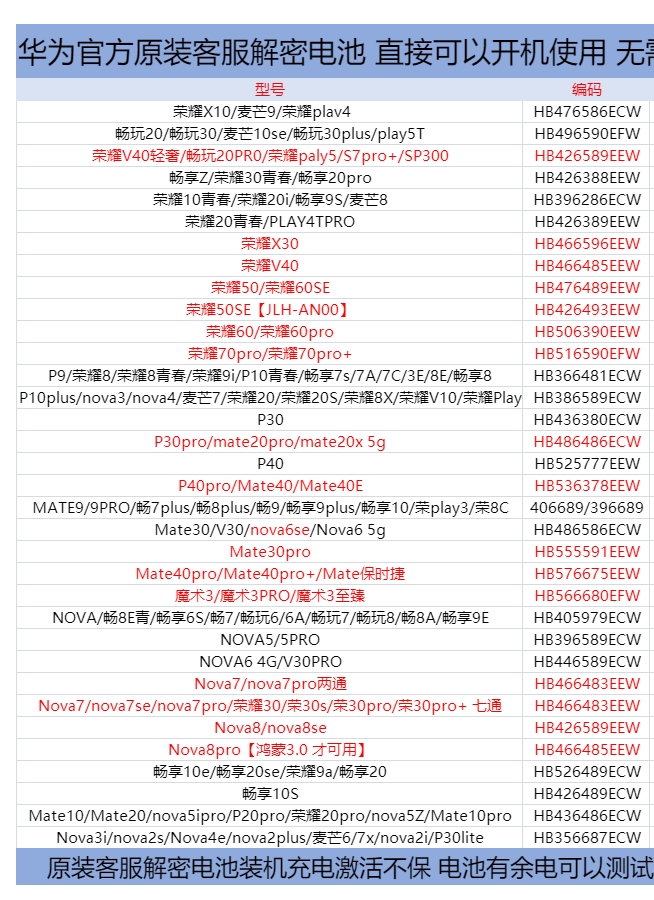 Apply Huawei p30 p40 p40 mate30 mate30 glory 50 play5 mate40pro decrypt battery-Taobao
