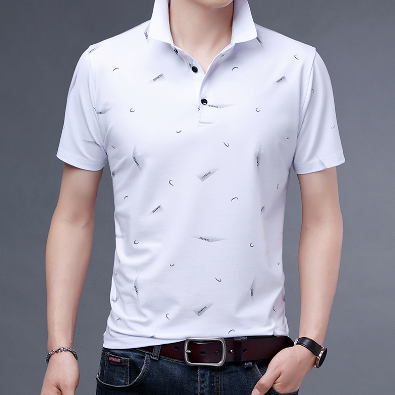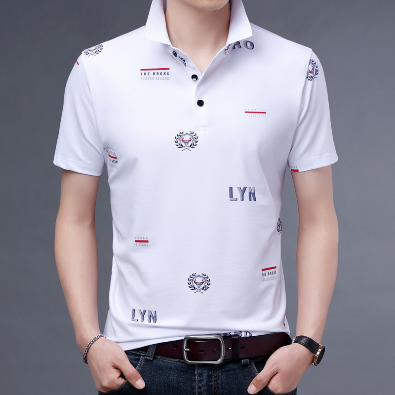 Summer weight plus men T-shirt short sleeve loose half sleeve large men fat fat fat fat cotton printed Polo shirt