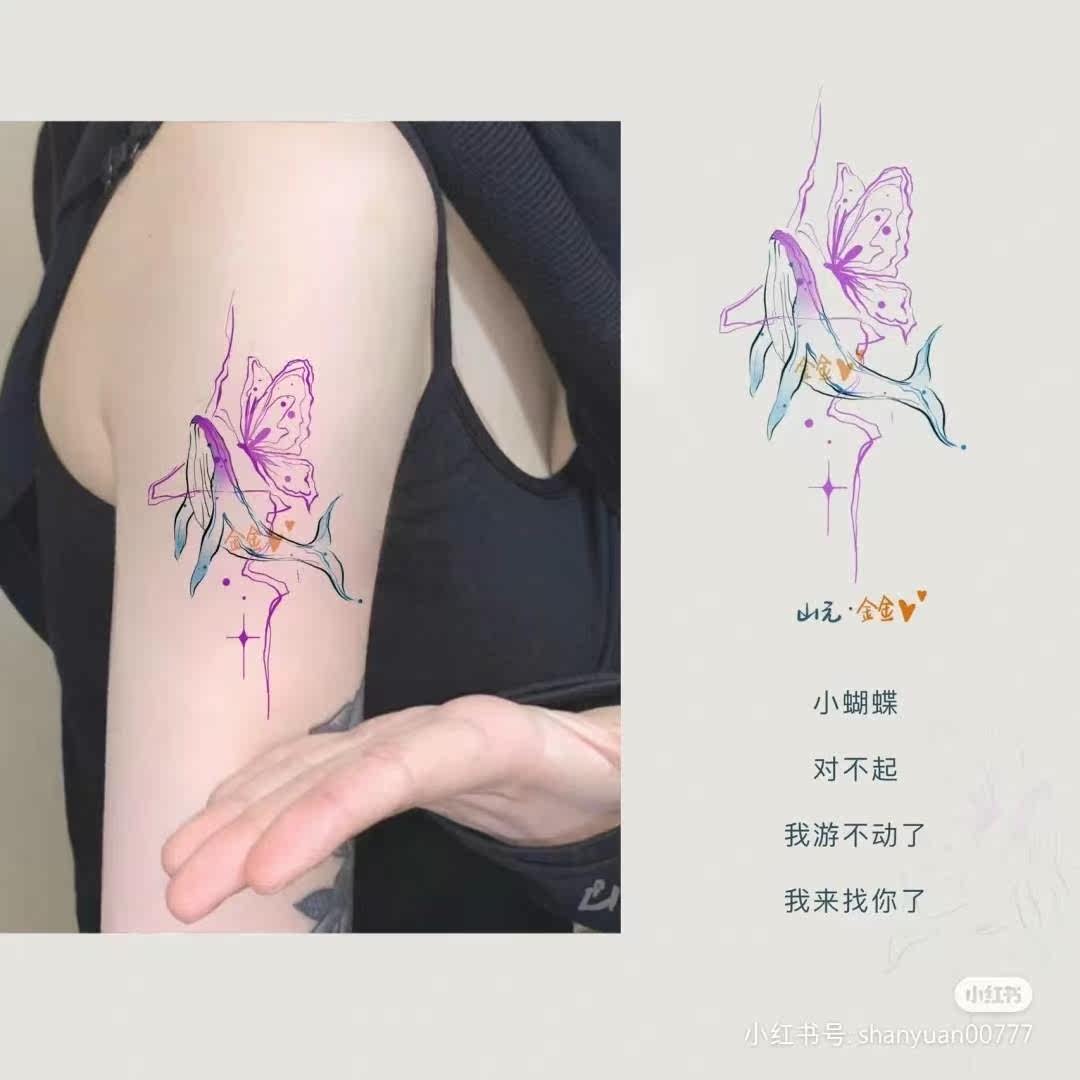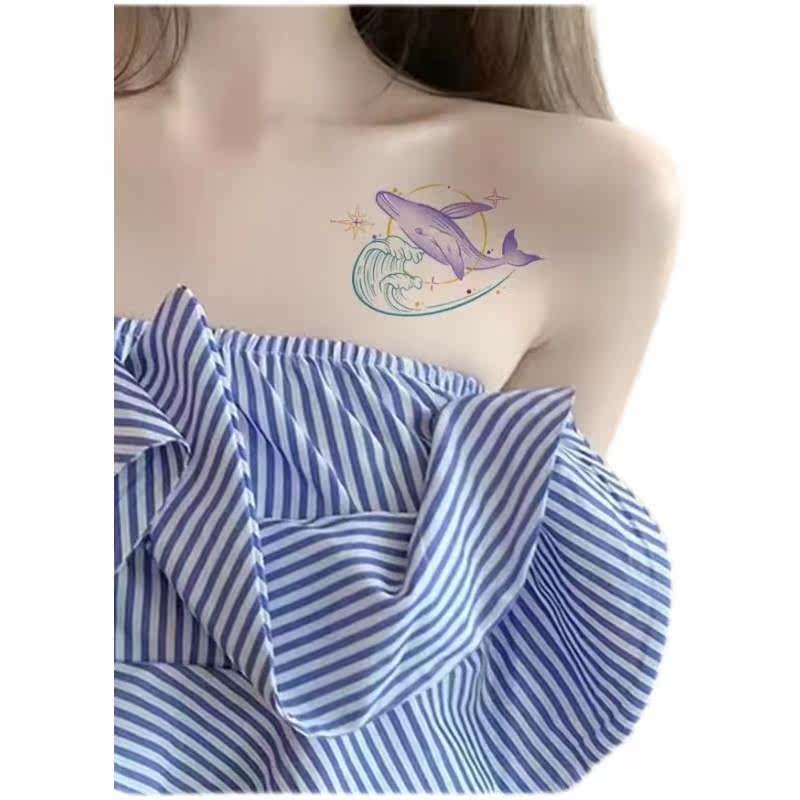 Waterproof woman persistent hot sister simulation colored whale tattoo with small fresh in air arm hand ring fingertattoo