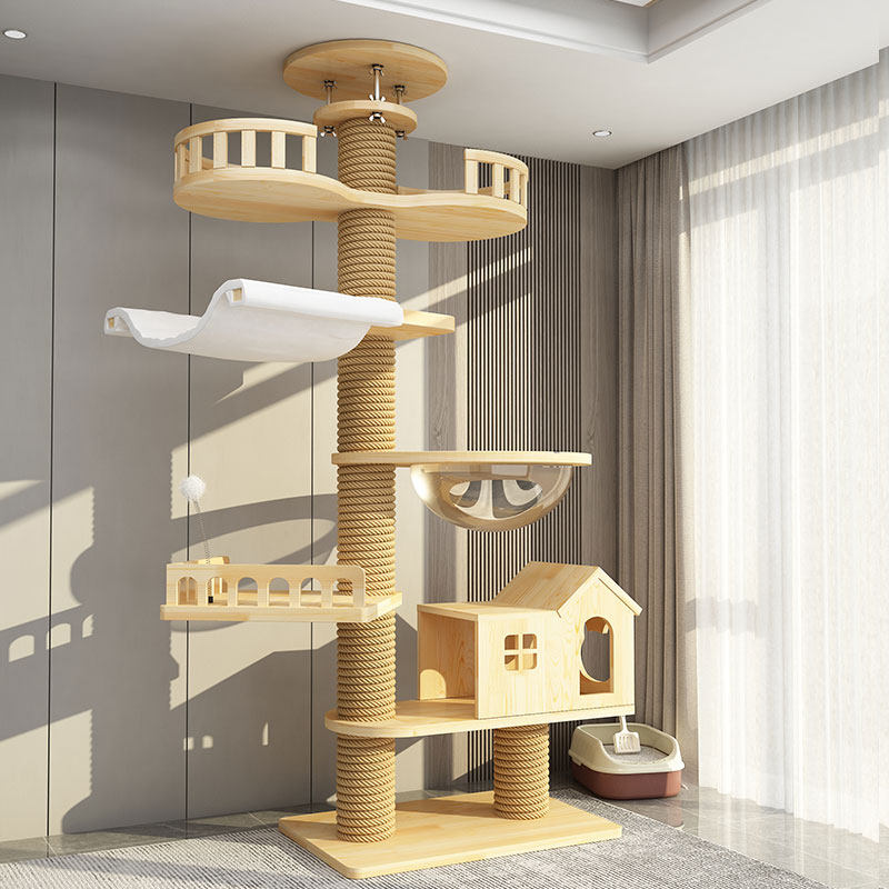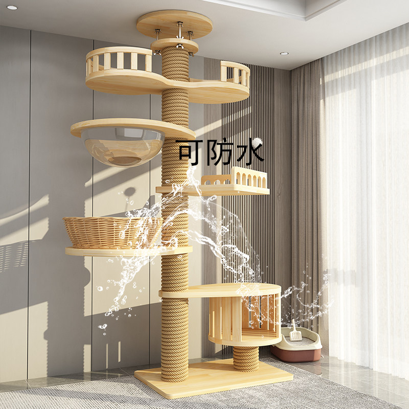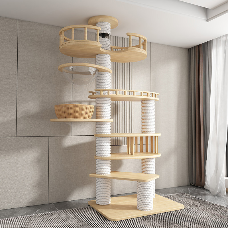 Cat climbing through the sky pillar floating window solid wood does not occupy a floor space free of perforated PVC cat cohorts to the top of the sky Cat Climbing-Taobao