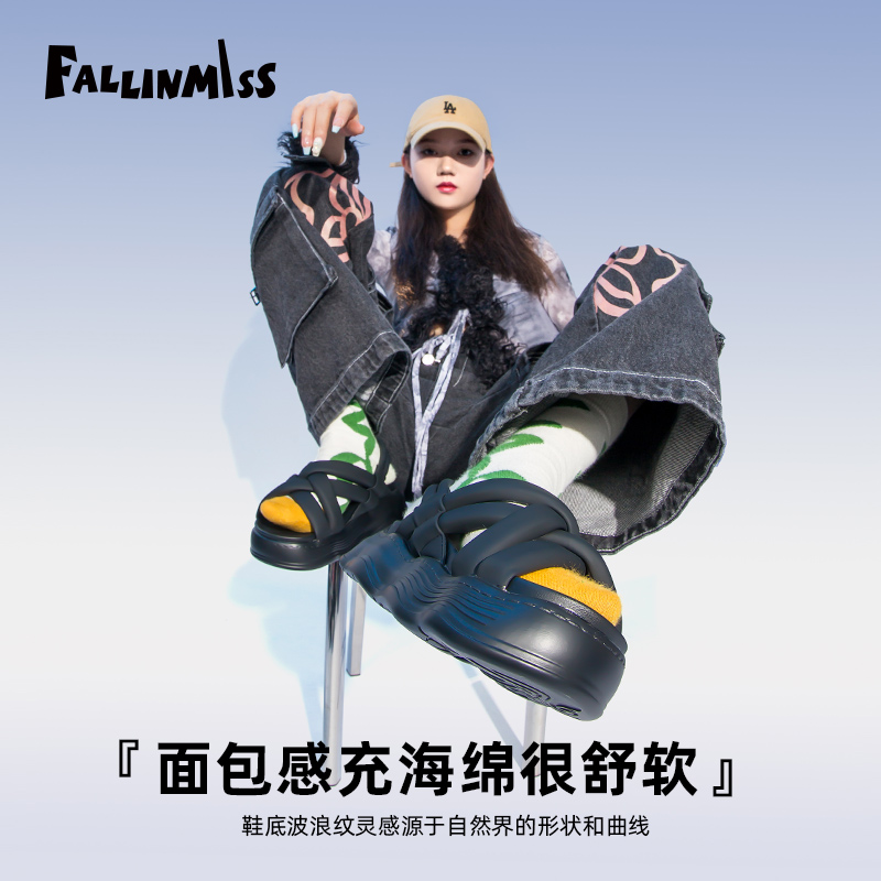 Non Riddle Wave Shoes Thick Sole Sandals Women Summer 2023 New Line With Flat Bottom Sports Casual Beach Shoes-Taobao