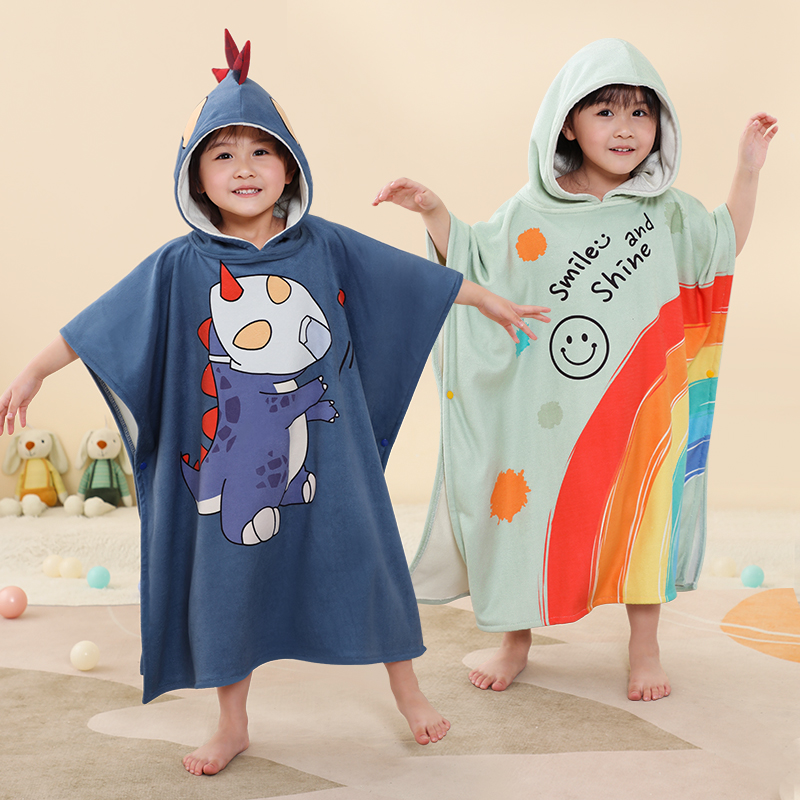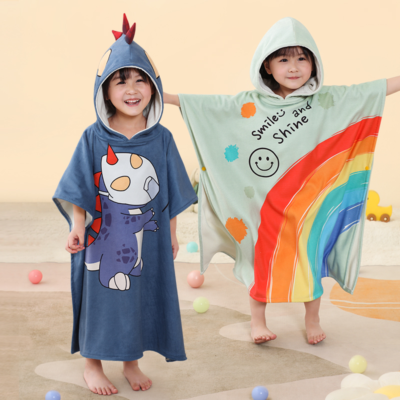 Children's bath towel cloak bathrobe male and female baby children swimming and bathing can wear a cap absorbing water quick-drying special for big children