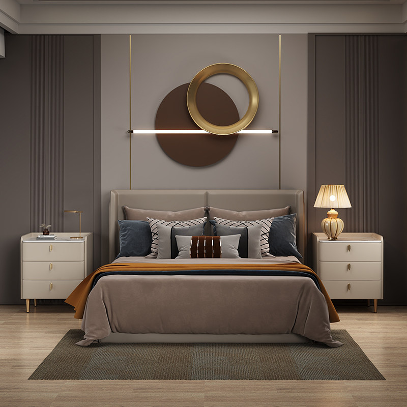 Solid wood bed head cabinet minimalist modern light extravagant advanced senses bedside cabinet home bedroom rock plate small headboard storage cabinet-Taobao