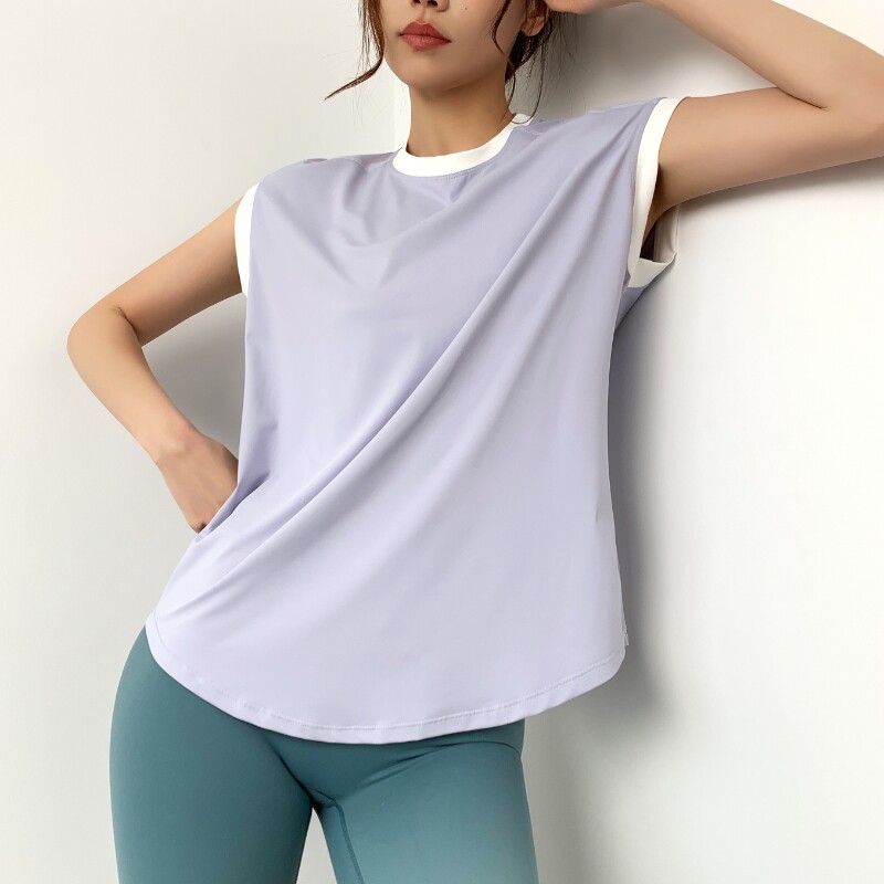 Mitaogirl Colored Short Sleeves T-Shirt Women Running Vest Campaign Shoulder-Lax Fitness Yoga Costume