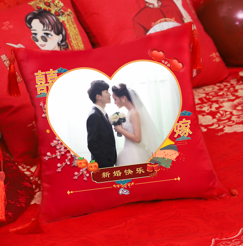 Chinese wind wedding with pillows a pair of press-bed dolls wedding ceremony leaning on pillow to make photo diy to customize the new wedding happy words-Taobao