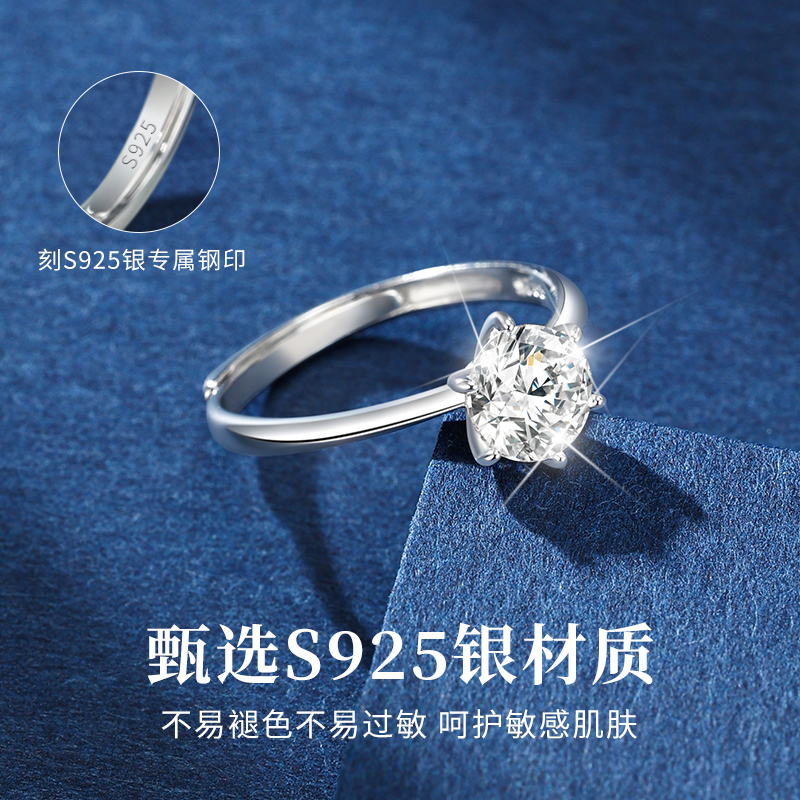 China gold treasures Shang silver Mossang stone ring female section One carat diamond ring courting wedding engagement gift to girlfriend wife-Taobao