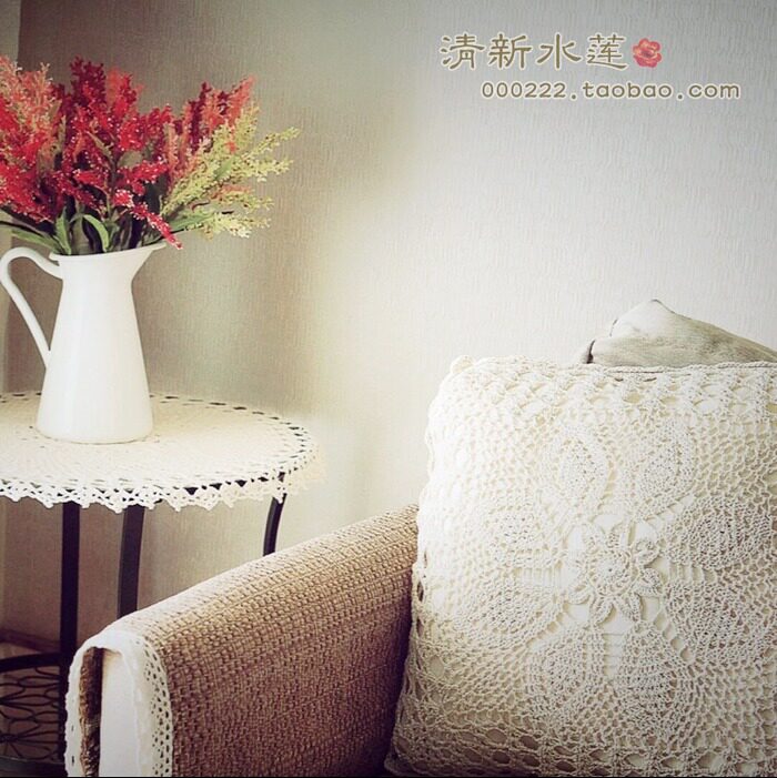 Fresh Water Lotus Artisanal Crochet Hook Flowers full cotton Mori Department Hollowed-out Back Cushion Close to pillow sleeve Nordic rice white without core