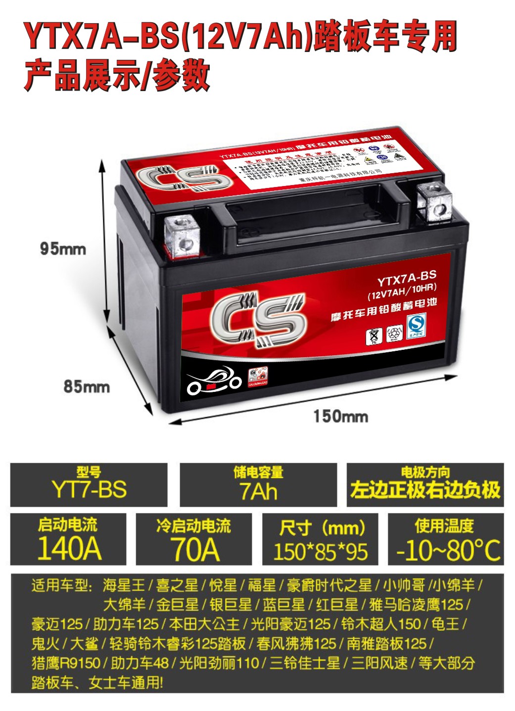 Haojue 125 scooter battery 12v universal YTX7A-BS motorcycle battery 12v7ah battery CS
