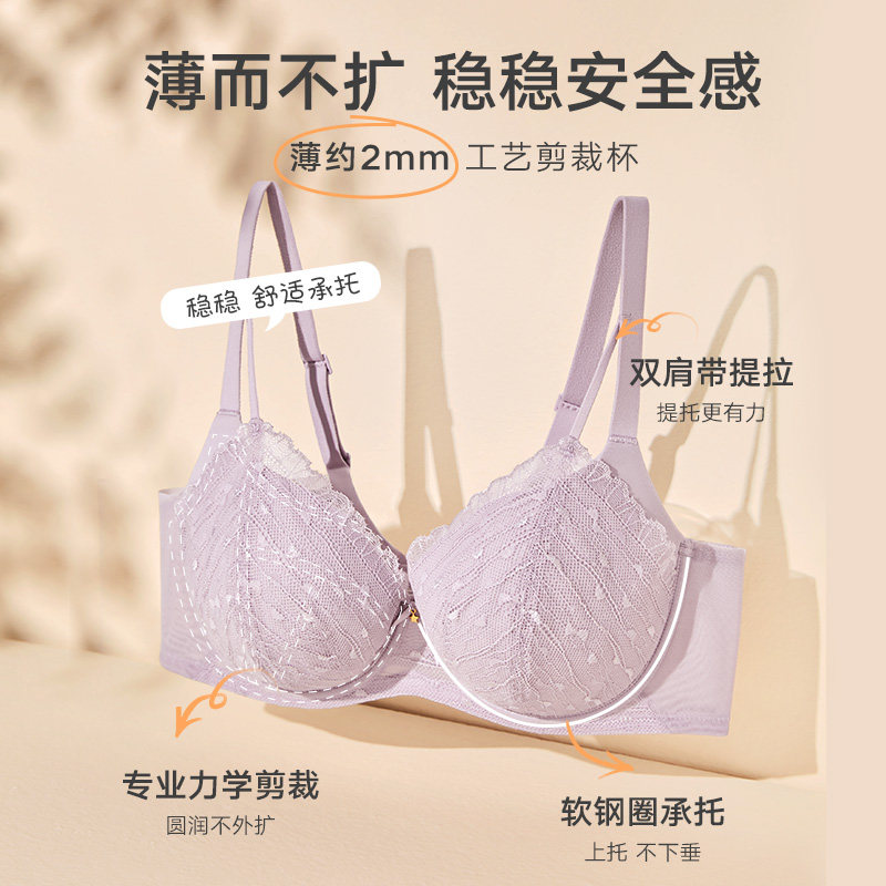 Manneffin large breasted bra light thin bra light sexy lace soft steel ring lingerie lady comfort beauty back big cup bra-Taobao