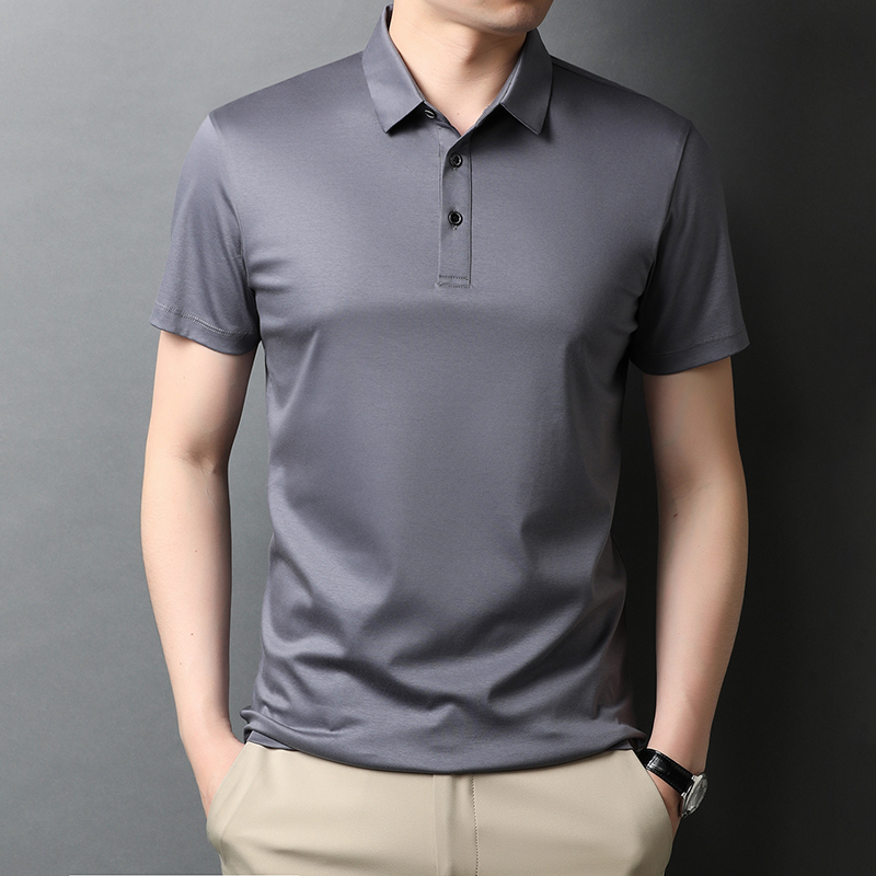 Chiamaniya short sleeve T-shirt men ice silk business casual full cotton t pure color turnover POLO shirt-Taobao