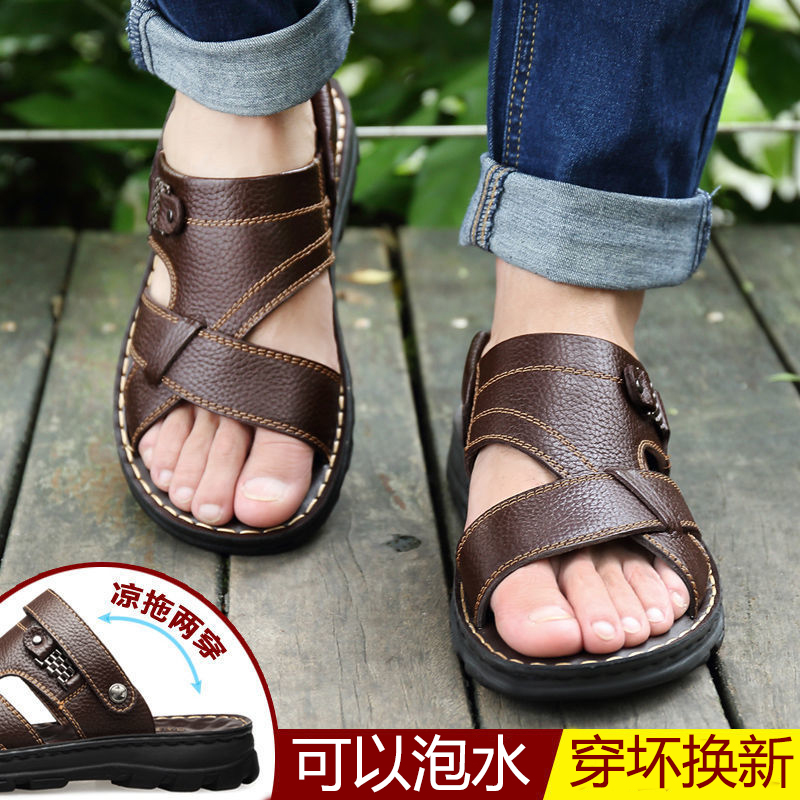 Summer sandals men's 2023 new casual thick bottom beach outside wearing dad anti-wear and wear dual-use sandals-Taobao