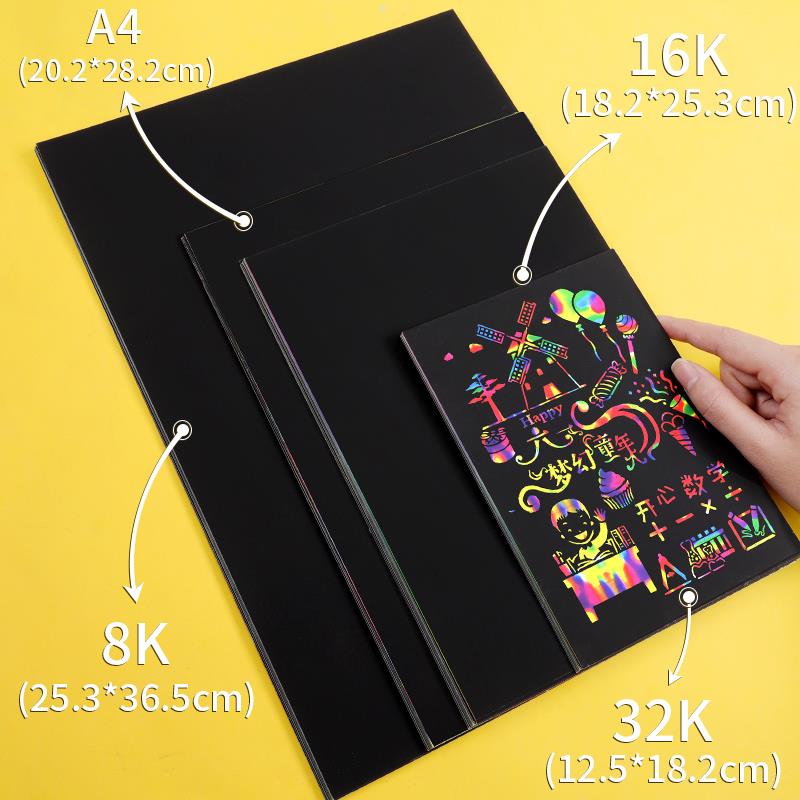 100 children's colorful scraping paper black creative painting night view city suit toothpick A4 students non-toxic scraping painting painting color painting paper graffiti graffiti elementary school students scraping paper