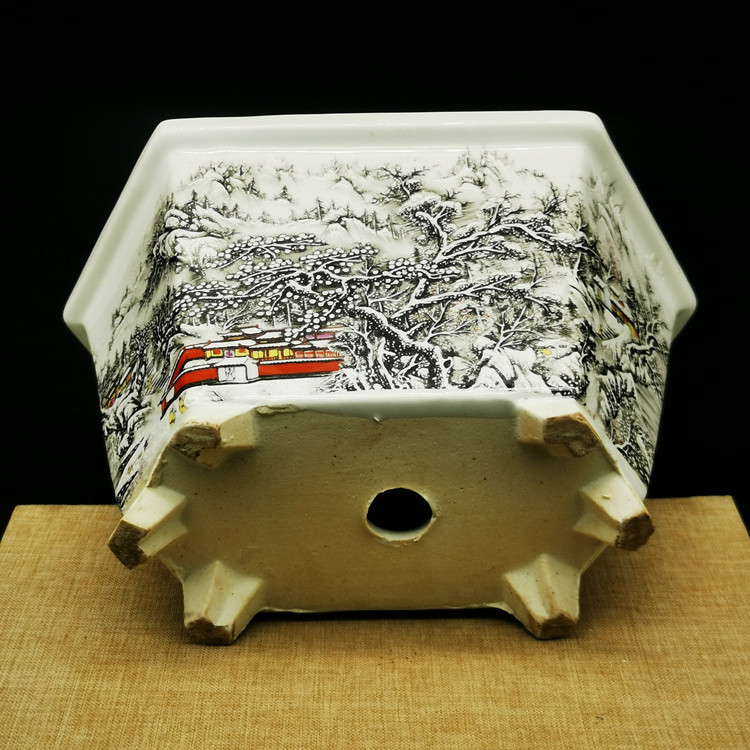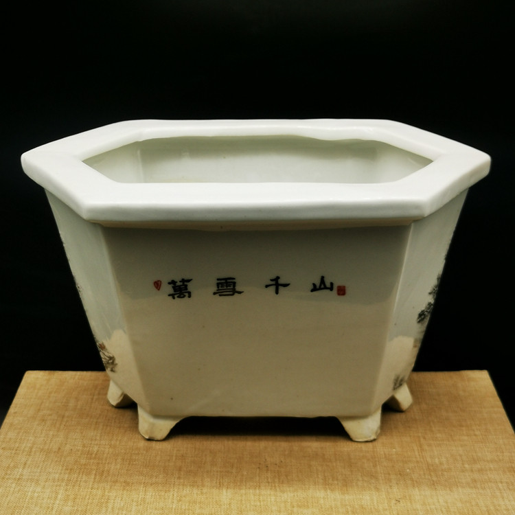 Republic Of China Pink Snowscape Hexagonal Flower Pot Imitation Antique Porcelain Home Pendulum of Calamity Bonsai Raising Flowers Ancient Play Antique Old Goods-Taobao