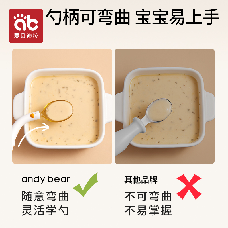 Baby Spoon School Meals Training Silicone Gel Spoon Newborn Baby Autonomic Eating Children Cutlery Suit Cob Spoon-Taobao