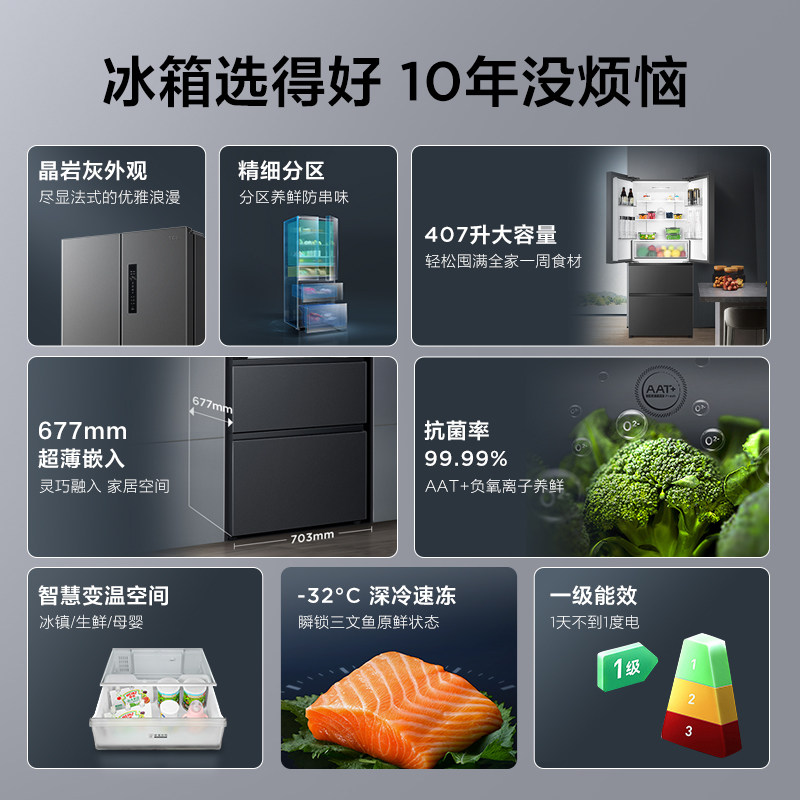 TCL407 liters-style four-opening multiple doors air-cooled frost-free energy saving small household type home ultrathin embedded refrigerator-Taobao