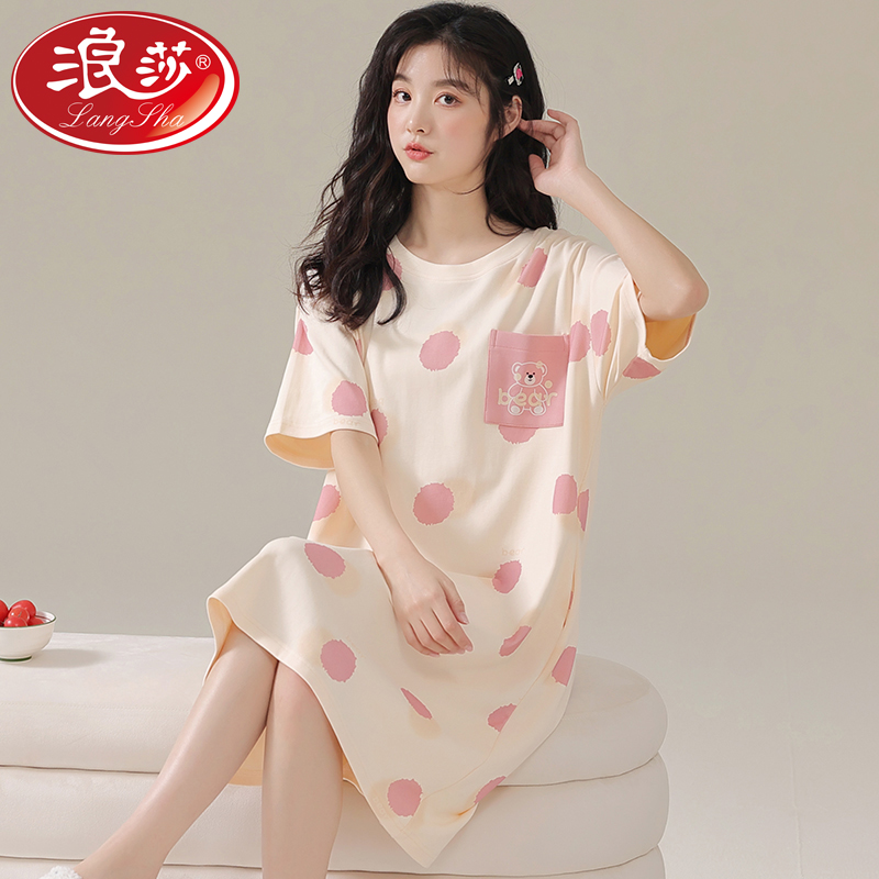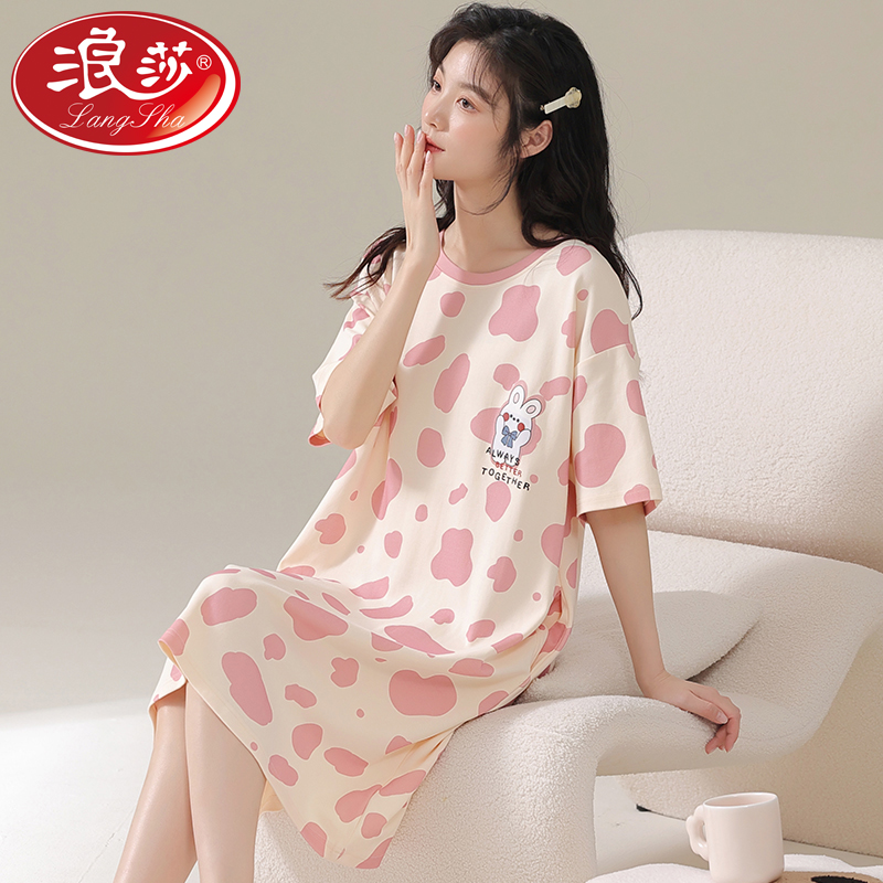 2023 New Sleeping Dress Women's Summer Pure Cotton Short Sleeves Pink Young Lady Students Little Sexy Sleepwear Women's Summer-Taobao