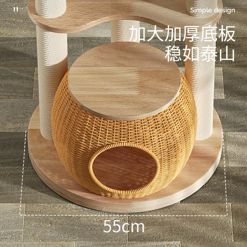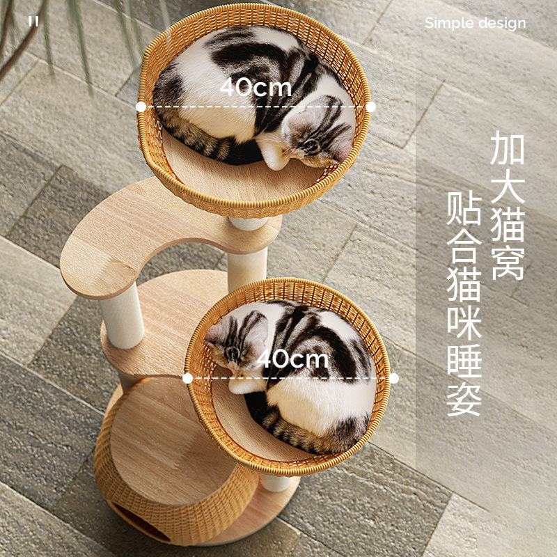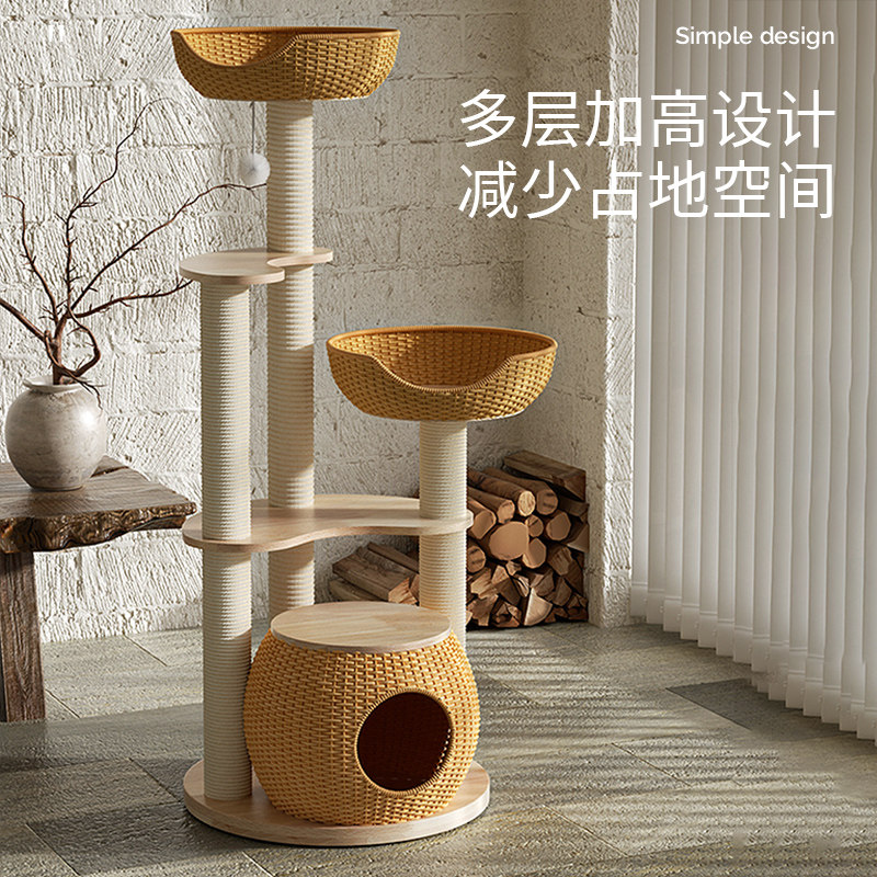Solid wood rattan chowl cat and cat climbing shelf cat tree integrated summer small sisal multi-cat small family type without occupying a cat shelf-Taobao