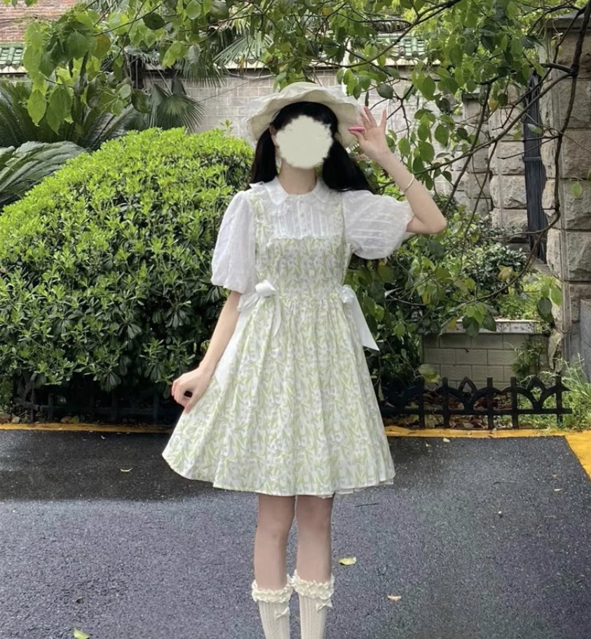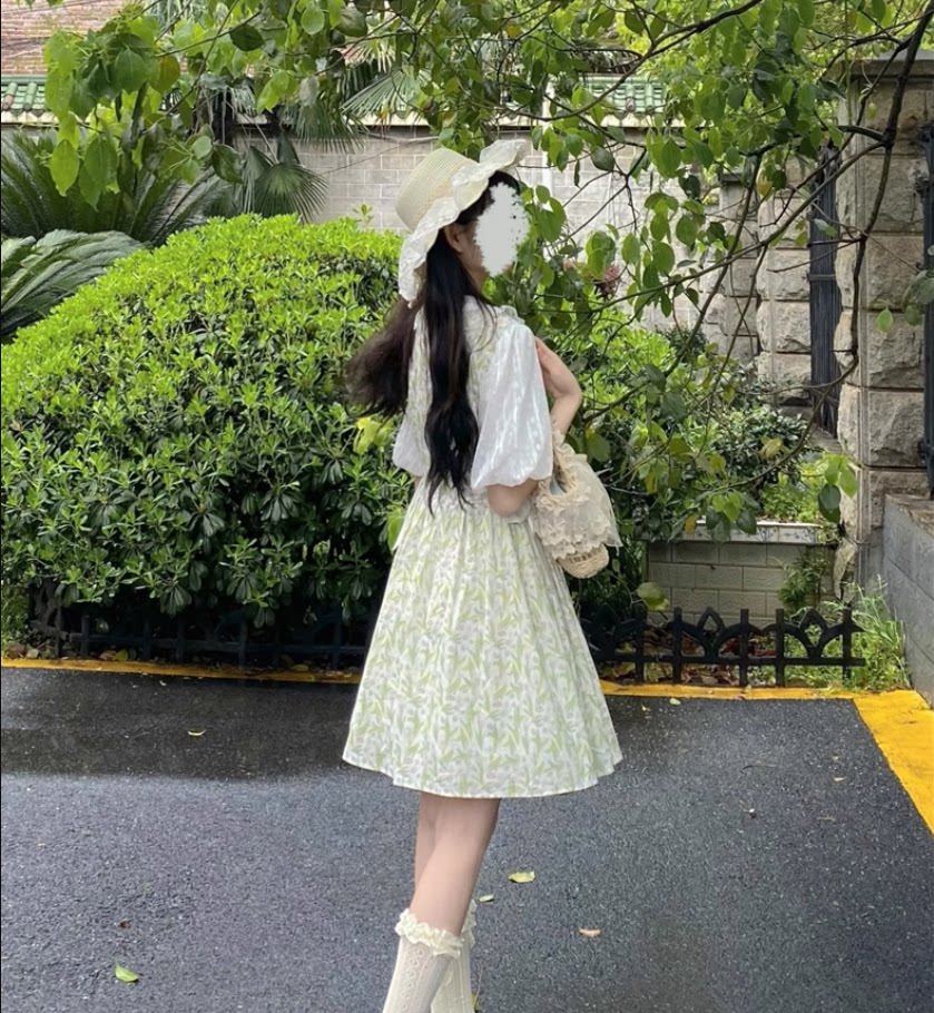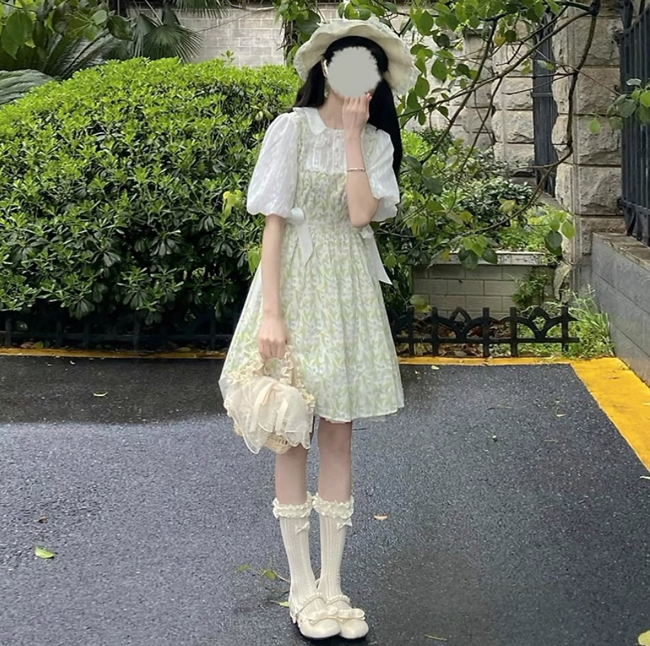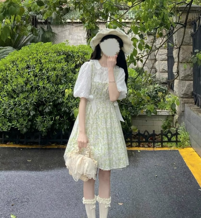 Tea break French doll take two pieces of debris dress for summer 2023 new waist green princess dress