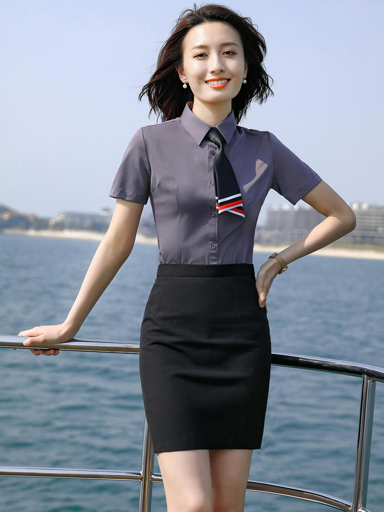 Professional dress Summer black short sleeve shirt custom suit Property Front desk reception suit