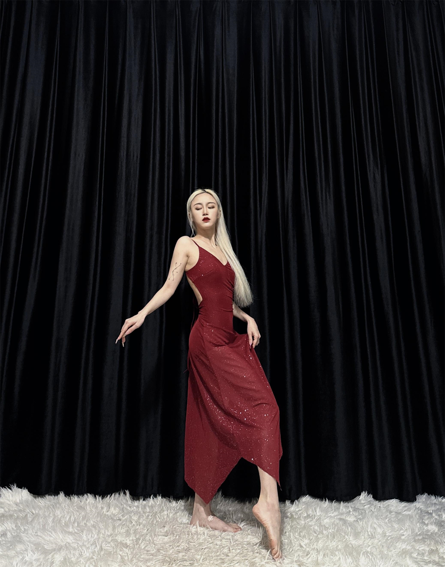 Wine Red Wine Red Shiny Sleeves Black Tandem Dress Black Shiny Sleeves Cover