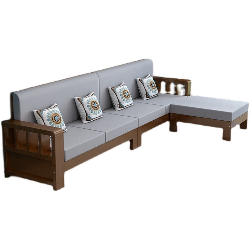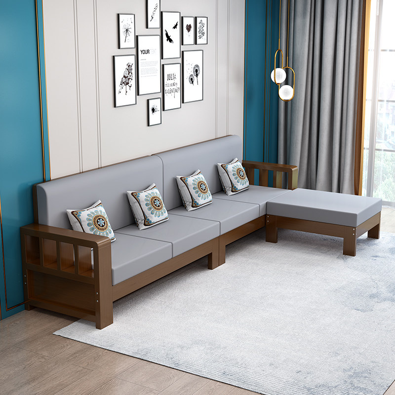 Chinese style solid wood sofa combination small apartment log modern minimalist living room winter and summer dual-use economical long sofa chair