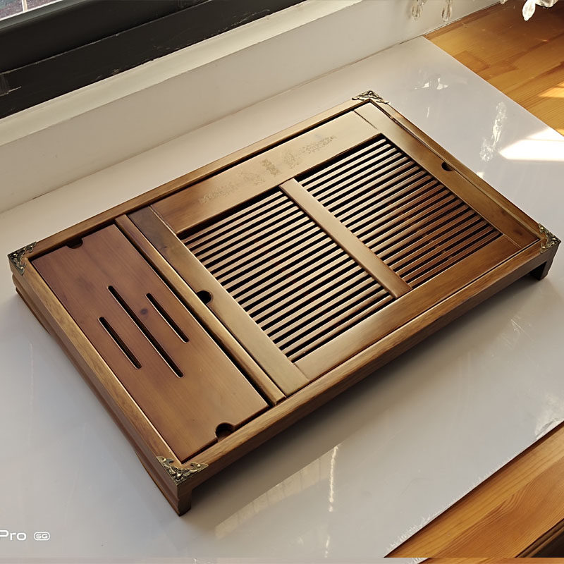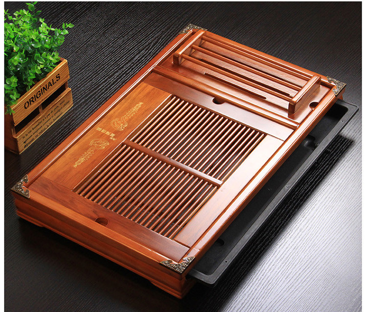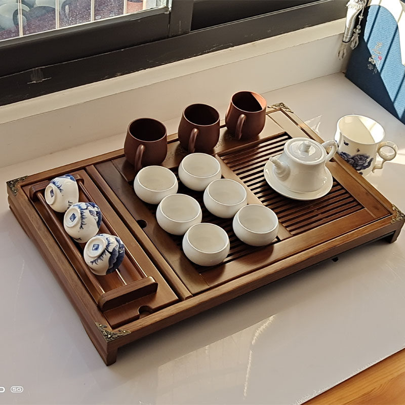 Yunfeng household tea tray Solid wood drawer type storage and drainage Wooden tea sea Simple tea table Kung Fu Tea tray with cup holder