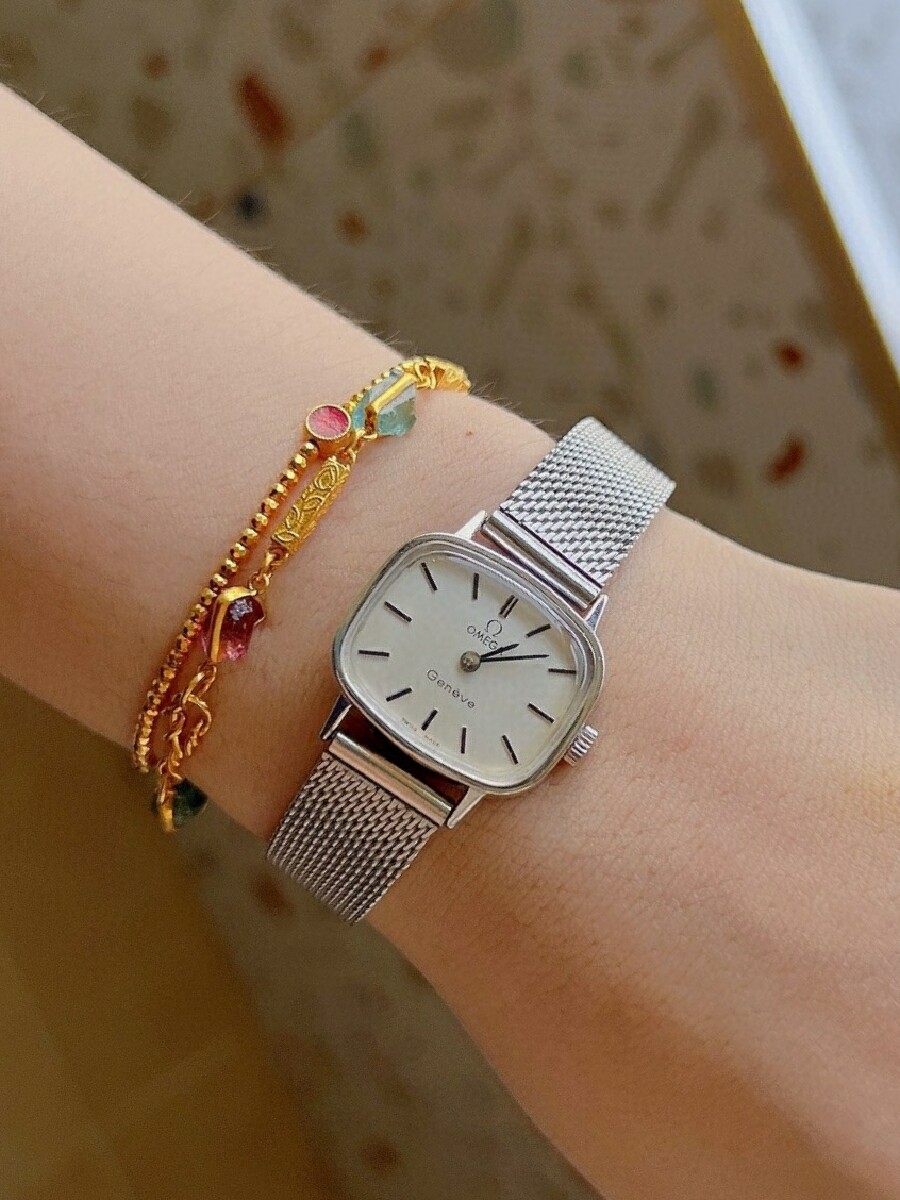 "TV" Geneva Geneve bag gold rectangular Euro-Mega manual retro-ancient woman watch 625