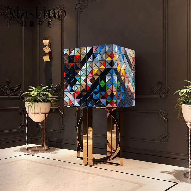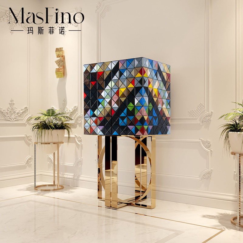 Masfino Italian Light Luxury Stainless Steel Living Room Pixel Cabinet House Cabinet Cabinet Cabinet