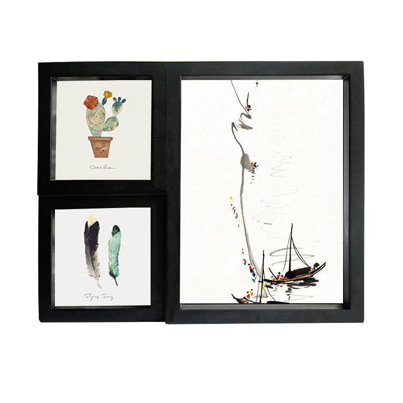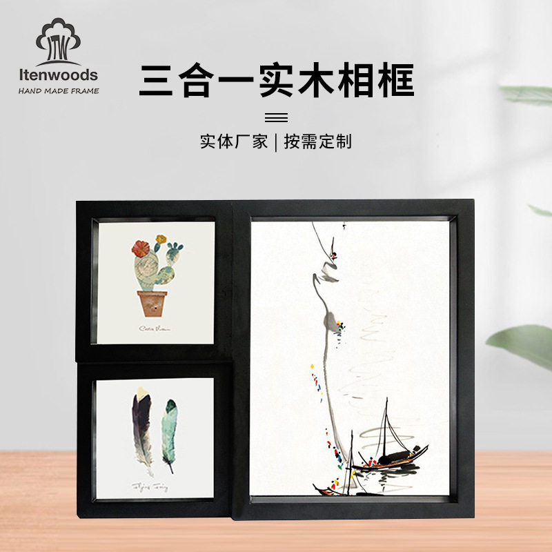 Cross-border three openings hand-combined solid wood photo frame stereo frame wood wall hanging photo wall