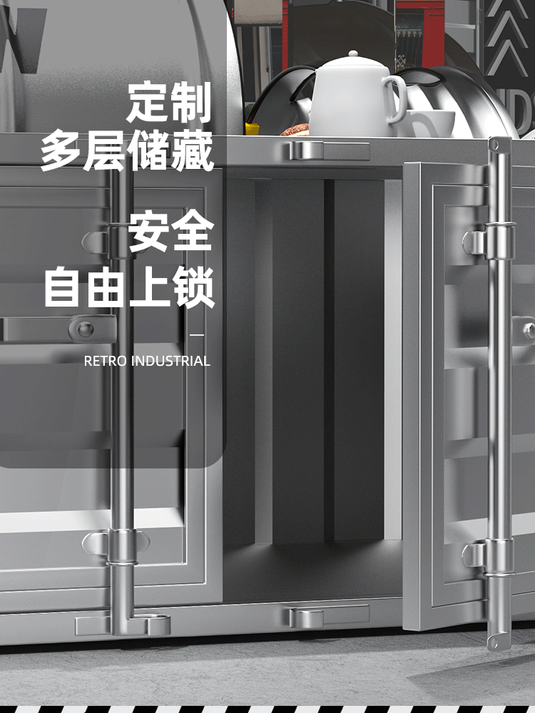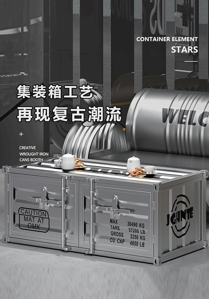 Creative Industrial Wind Container Tea Table Locker Personality Fitness Room Negotiation Area Iron Art Short Cabinet Side Cupboards Custom-Taobao
