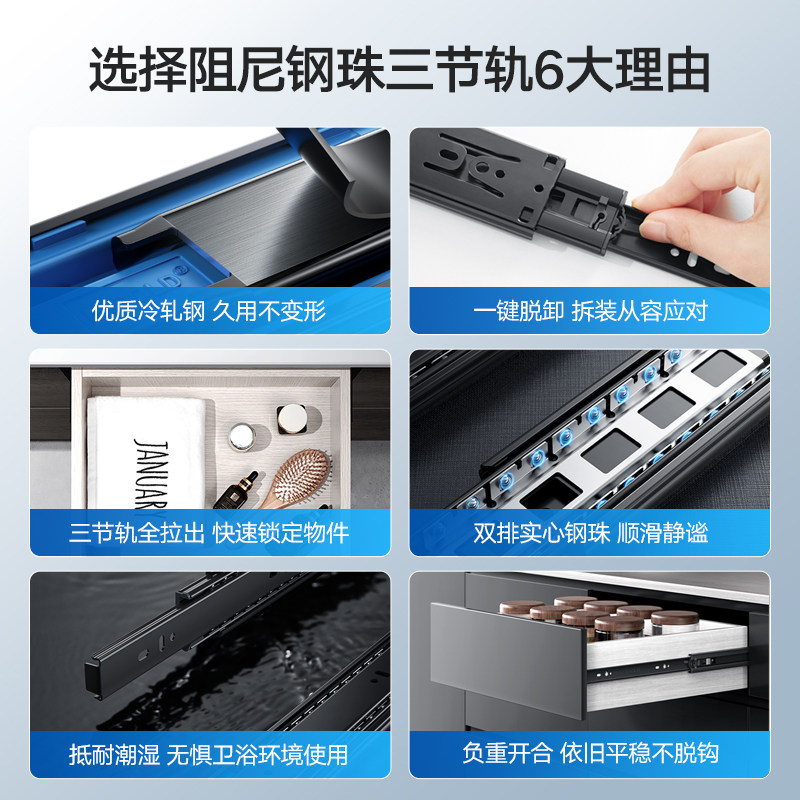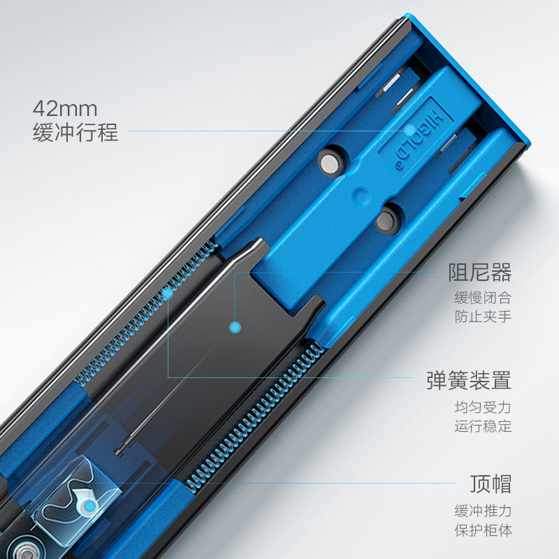 HIGOLD Humvee drawers track Three Rail Double Spring Damping Buffer Silent Rail Five Gold Accessories Slide Rail-Taobao