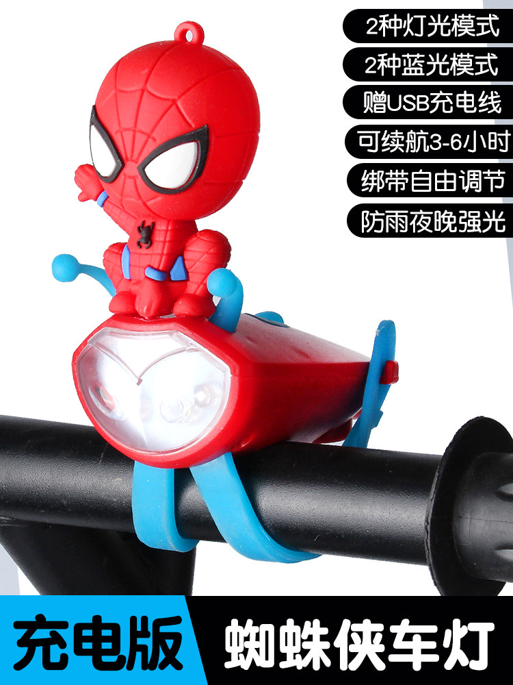 Spider Hero Card Traffic Front Light Baby Carrier Balance Car Lights Horn Charging Rain-proof Flashing Lights lights Lights Bike-Taobao