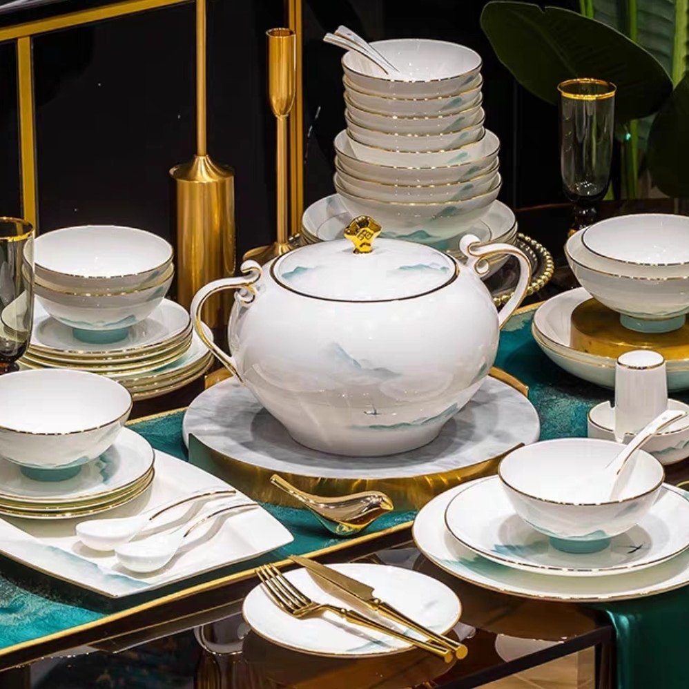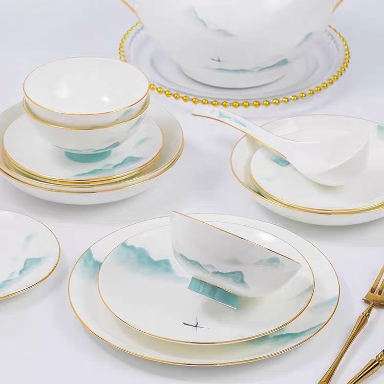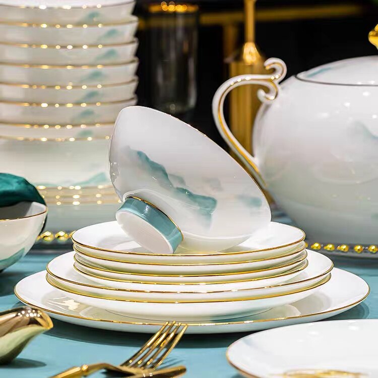 (60 pieces) 2023 New Bowls and Plates High-grade Bone China Jingdezhen Advanced Sense Ceramic Single Bowl and Plate Tableware