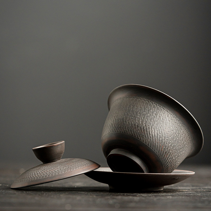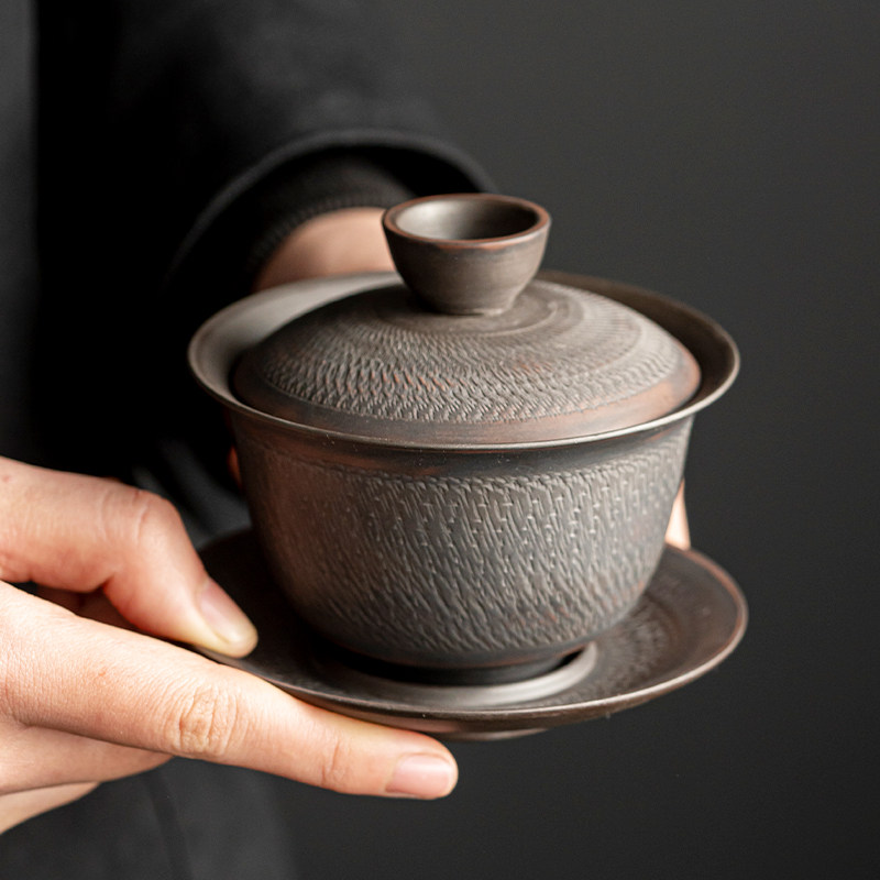 Purple Pottery Hover Floating Cover Bowl 3-only Kung fu tea Tea With Tea Bowl single home upscale with cover cup Ceramic Goat Grease Jade-Taobao