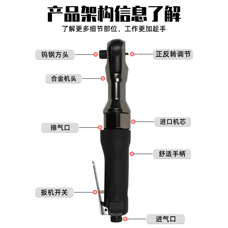 Resistant NY-7033 industrial grade right angle pneumatic ratchet wrench powerful large torque perforated style 1 2 wind cannon wind batch-Taobao