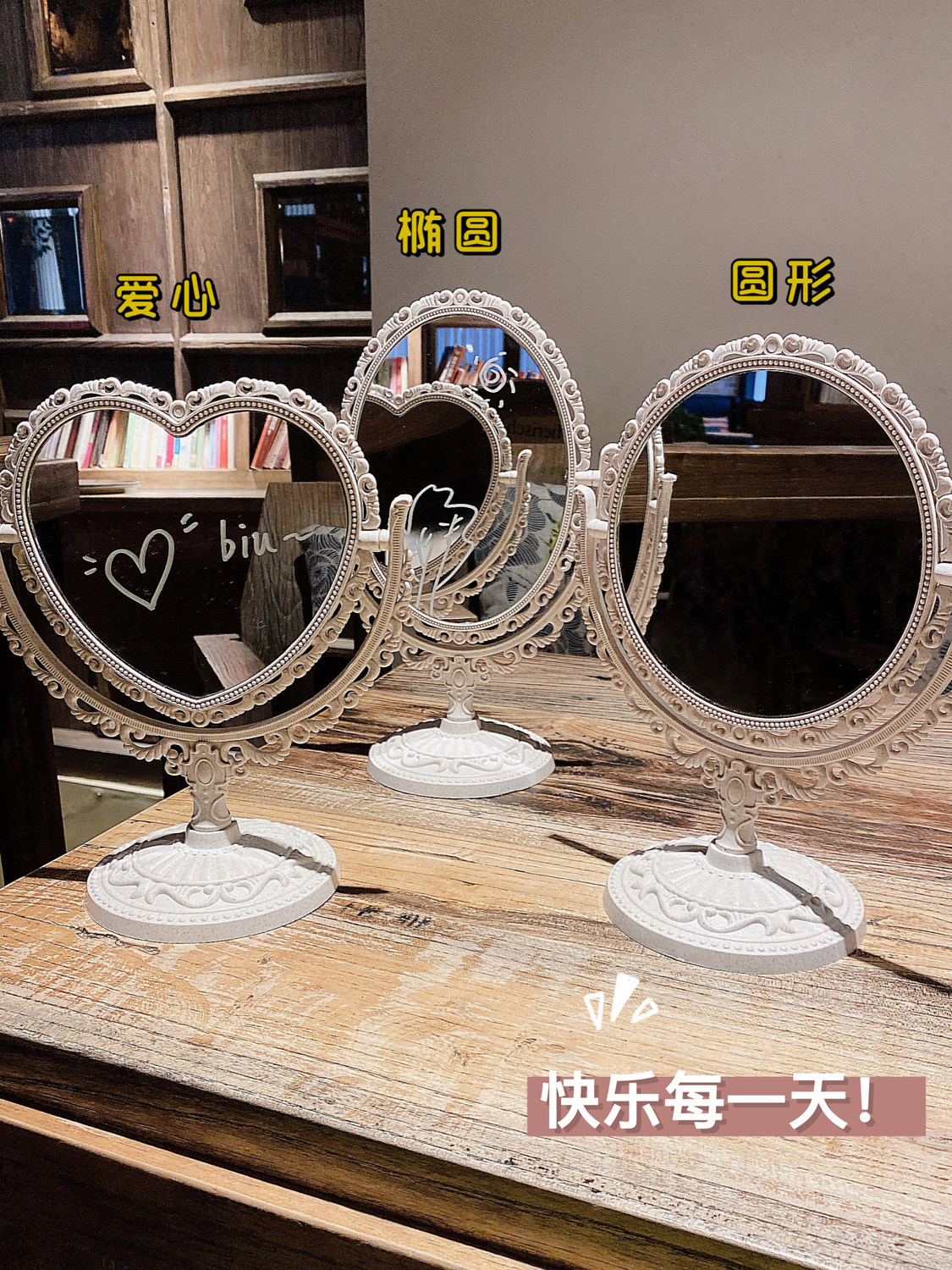 Put the mirror on the table on the Red Desktop Desktop Makeup Mirror Student Dormitory French vintage standardized