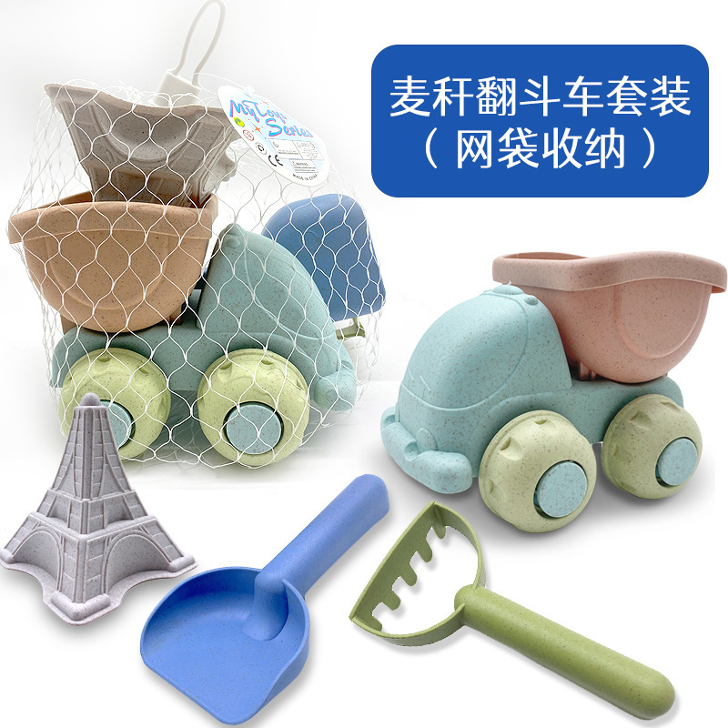 In children's beach toy set baby digging sand stalk material shovel rake beach playing sand tools