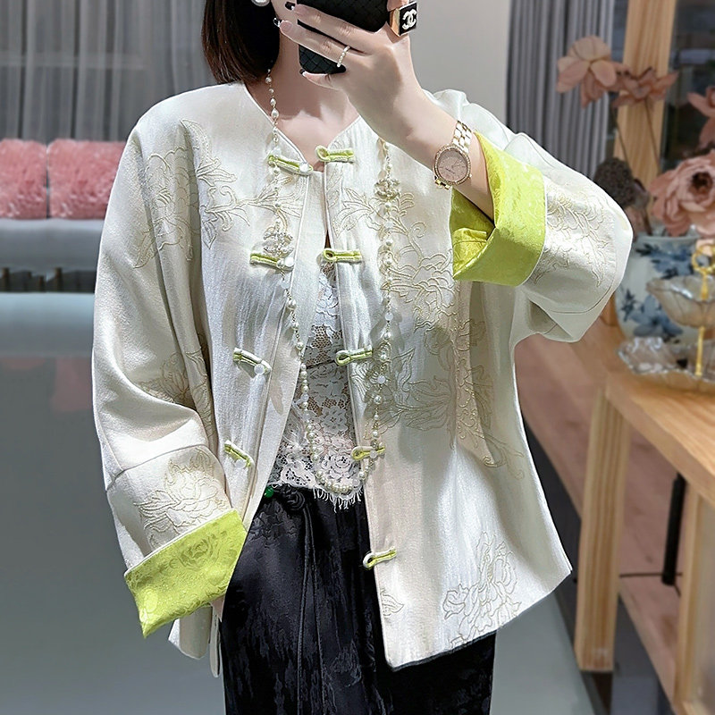 New Chinese-style blouses Tang Dress Qipao Woman small Subgrowers Handmaid Short Embroidery Light National Wind Big Code Disc Buckle Jacket-Taobao