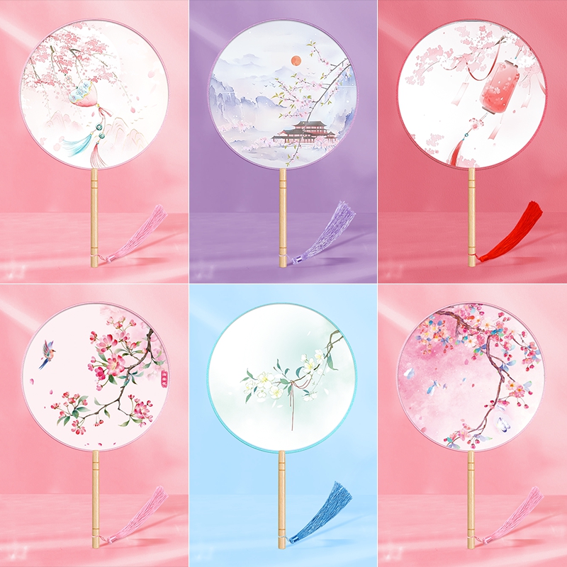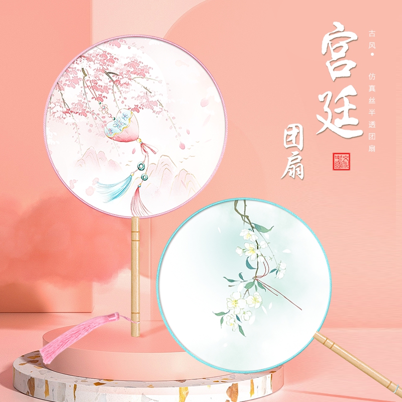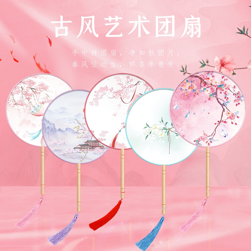 Group Fan Gufeng Summer Vintage Palace Round Fan children Suzhou China Wind Han Costume Women Qipao Ancient Dress Dance Fan-Taobao