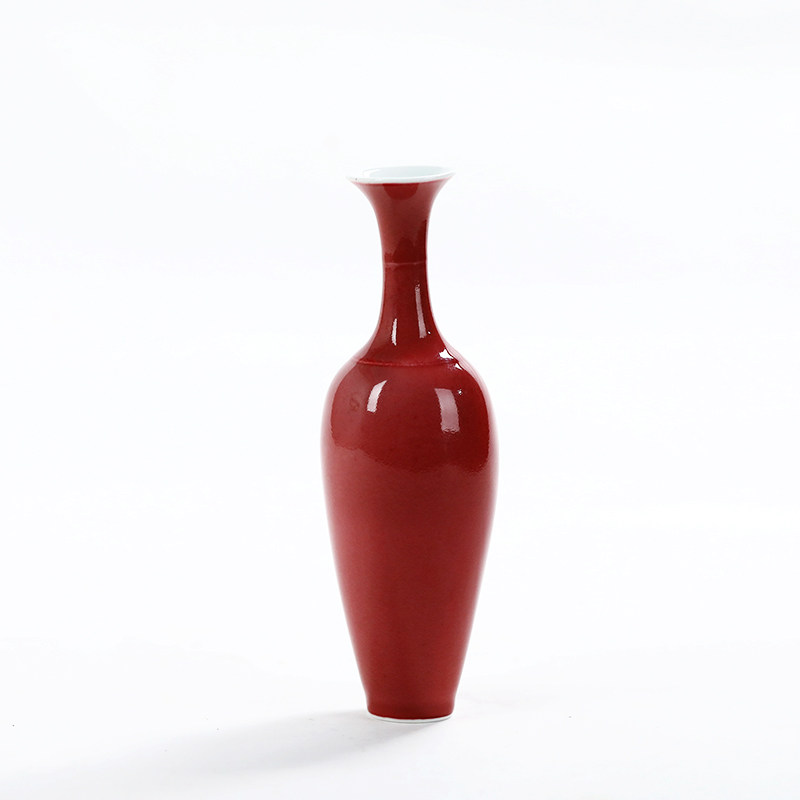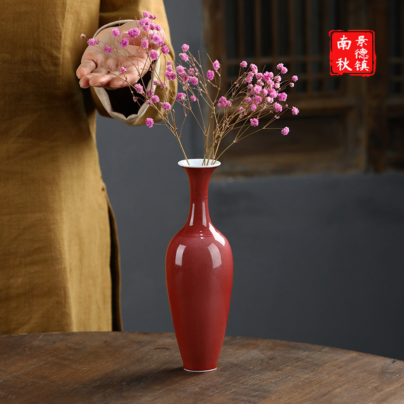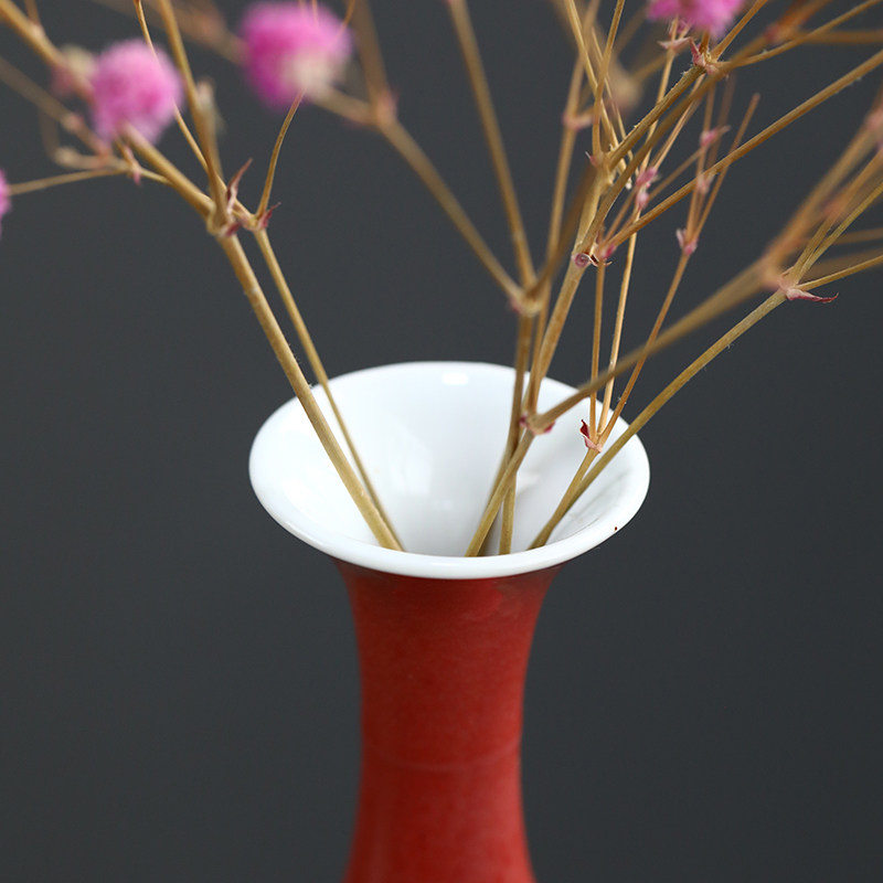 Jingdezhen handmade cowpea red-inserted vase ceramic tea road flower insert home minimalist table decoration pendulum with willow leaf bottle-Taobao