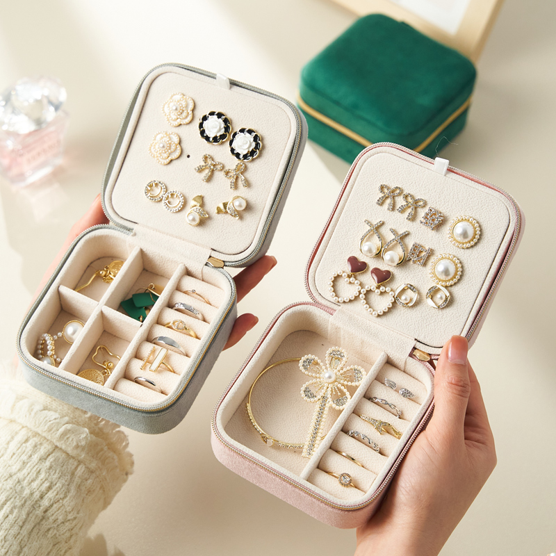 Jewelry Jewelry Box Small Portable Upscale Refined New Ear Nail Ear Accessories Necklace Ring Ornament Containing Box Gold-Taobao