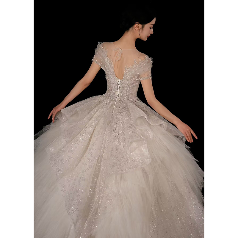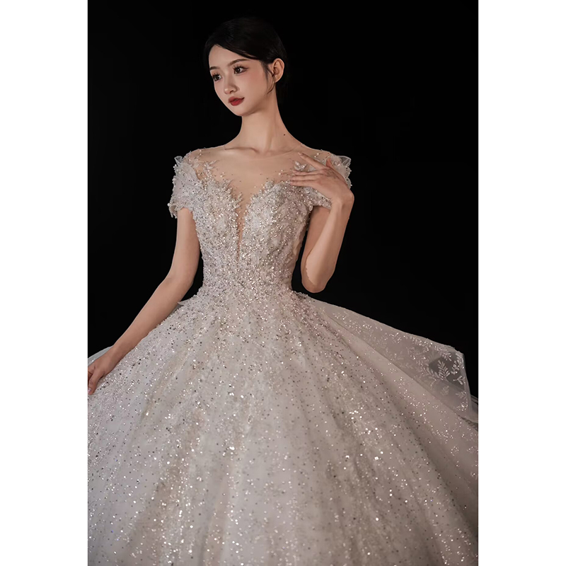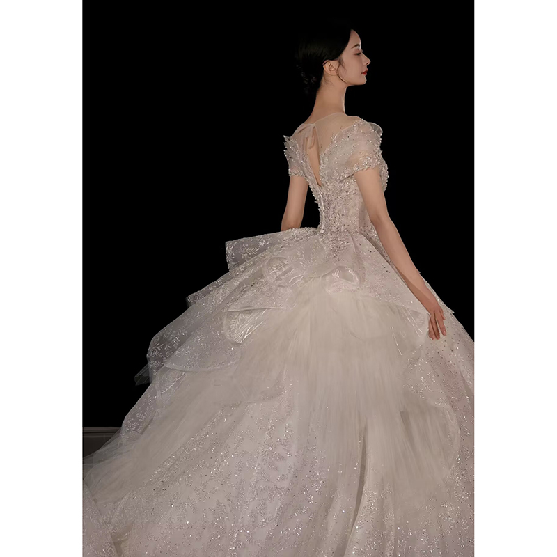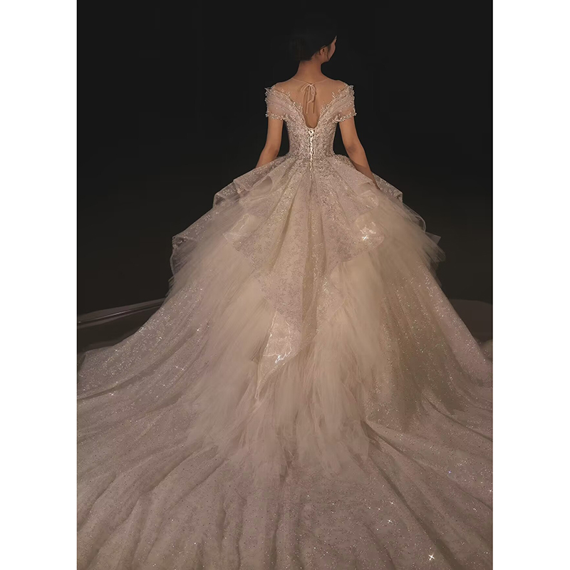 Straight Shoulder Wedding Dress Bride 2023 New Staple Yarn Rework Big Code Little Sub Advanced Texture Style Tug Trailing Winter-Taobao